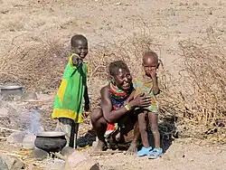 While the Turkana mainly rely on pastoralism they also cultivate some of their food. Multiple studies have made note of sorghum cultivation in Turkana society. One such study, Sorghum Gardens in South Turkana: Cultivation among a Nomadic Pastoral People, notes that, while sorghum cultivation is quite productive, it is more limited by environmental factors than pastoralism.[8] The Jie, a longtime ally of the Turkana, have sometimes been known to gift sorghum to the Turkana.