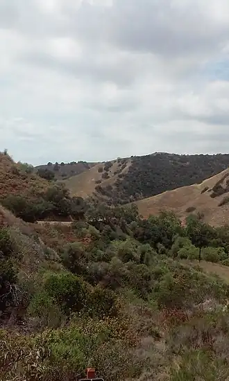 Turnbull Canyon near Whittier, California is an east–west canyon with relatively steep drainage. The canyon has a creek at its bottom that supports a narrow strip of riparian woodland dominated by sycamore trees, while the slopes are covered in coastal sage and native and non-native grasses. The Puente Hills Preserve has a 4-mile loop trail that lies in the northern-central part of the preserve.[2][3][4]