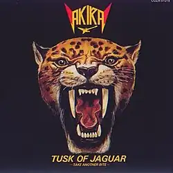 Tusk of Jaguar is the debut solo studio album by Japanese guitarist Akira Takasaki, renowned for his contributions to the rock bands Loudness and Lazy. Initially released in 1982 exclusively in Japan, it was reissued in 2005.[3] The album represents a collaborative effort between Takasaki and keyboard player Masanori Sasaji, who composed three tracks and played a crucial role in arranging and co-producing the recording. A large contribution was given to the album by Takasaki's bandmates in Loudness, who play on most tracks and collaborated on the musical arrangements. However, the music of Tusk of Jaguar is much more varied than in any Loudness' album, with its music ranging from hard rock to progressive rock to jazz fusion, reminiscing of some Dixie Dregs' and Al Di Meola's works.[2] The precise and fast guitar playing by Takasaki is anyway always present in every track, and he even takes the lead vocal spot in the song "Ebony Eyes".