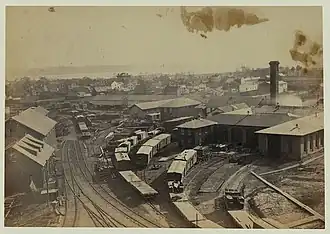 ![]() Orange & Alexandria Railroad rail yard in Alexandria, Virginia | |