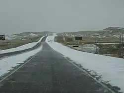 US 83 enters South Dakota just south of Olsonville, into Todd County, where it also enters the Rosebud Indian Reservation.[2] It passes through extremely deserted grassland without any sort of development on the road.[3] After a couple of miles, it reaches Mission, where it meets US 18 (Second Street). Here, US 83 turns left on to US 18 and the two routes begin a rather short concurrency lasting for approximately 3 miles (4.8 km). Through Mission, US 18/83 passes through generally moderate development and businesses along the road, before the route begins to become rural once again after exiting Mission.