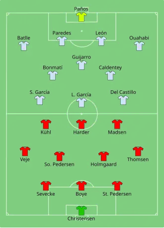 - ^ a b "Tactical Line-ups – Denmark v Spain" (PDF). UEFA. Union of European Football Associations. 16 July 2022. Archived from the original (PDF) on August 16, 2022. Retrieved 16 July 2022.