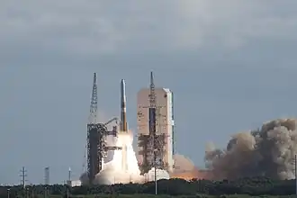 USA-293 was launched by United Launch Alliance on 22 August 2019 at 13:06 UTC atop a Delta IV Medium.[3] The launch was the final flight of the single-core Delta IV.[4] The launch took place from Cape Canaveral Space Launch Complex 37, and deployed USA-293 directly into a semi-synchronous orbit.[4]