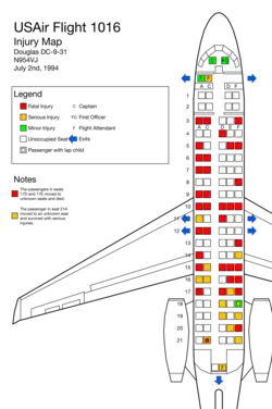 - ^ a b c d e f g h i j k l m n o p q r Aircraft Accident Report, Flight Into Terrain During Missed Approach, USAir Flight 1016, DC-9-31, N954VJ, Charlotte/Douglas International Airport, Charlotte, North Carolina, July 2, 1994 (PDF). National Transportation Safety Board. April 4, 1995. NTSB/AAR-95/03. Retrieved December 23, 2017.- Copy at Embry–Riddle Aeronautical University.