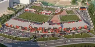 The centre covers over 4 hectares (9.9 acres) and includes a natural grass pitch and a synthetic pitch. Its official opening is scheduled for 2022. In July 2011, the club began training center construction. Progress was halted in 2015 due to the priority of improvised housing. The project's lead architect based the design on the plans created by Joan Gamper for FC Barcelona's training center.[1] On October 13, 2018, the first foundation stone was laid and the start of construction was announced in a ceremony organized by the management of USM Alger; the Algerian Minister of Youth and Sport, Mohamed Hattab; and the Wali of Algiers, Abdelkader Zoukh.[2]