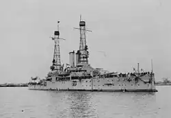 The ship remained largely inactive in Philadelphia for the next three years. On 22 January 1917, she became a receiving ship for naval recruits. Alabama was transferred to the southern Chesapeake to begin training recruits in the middle of March. Shortly thereafter, on 6 April, the United States declared war on Germany. Two days later, Alabama became the flagship of the 1st Division, Atlantic Fleet, and for the rest of the war she continued her training mission of the east coast of the United States. During this period, she made one cruise to the Gulf of Mexico from late June to early July 1918. On 11 November, Germany signed the Armistice that ended the fighting in Europe; Alabama continued training naval recruits, though at a reduced level of intensity. She took part in fleet maneuvers in February and March 1919 in the West Indies before returning to Philadelphia in April for repairs. A summer training cruise for midshipmen from the US Naval Academy followed; Alabama departed Philadelphia on 28 May bound for Annapolis, where she arrived the next day. After taking on a contingent of 184 midshipmen, she steamed out of Annapolis on 9 June. The cruise went to the West Indies and passed through the Panama Canal and back. By mid-July, the ship was cruising off the coast of New England. She returned south in August for maneuvers, and at the end of the month she returned the midshipmen to Annapolis before docking in Philadelphia.[3]