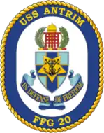 USS Antrim (FFG-20) was the twelfth ship of the Oliver Hazard Perry class of guided-missile frigates. She was named for Rear Admiral Richard Nott Antrim (1907–1969).