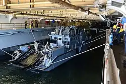 | Well deck dimensions | 266-by-50-foot (81 by 15.2 m) by 28-foot (8.5 m) high |