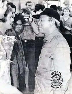 Nguyen Van Thieu, president of South Vietnam, came aboard Blue Ridge on 28 June 1972 to confer with Vice Admiral Holloway, Admiral Gaddis, General Miller and "to convey his personal thanks to the sailors and Marines of the amphibious forces for 'the preservation of Peace and Freedom' in South Vietnam."[23]