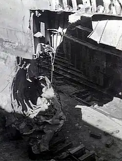 On 24 October 1933, Chicago collided with the British freighter Silver Palm in dense fog off Point Sur, California. Three officers aboard Chicago were killed in their quarters during the collision, and an enlisted man's arm had to be amputated as well. Silver Palm penetrated around 18 feet (5.5 m) into the cruiser's port bow, forward of the Number 1 gun mount.[6] At the time of the incident damage was estimated to be around $200,000 ($4.86 million today).[7] The vessel was repaired at the Mare Island Naval Shipyard, departing there on 24 March 1934.[8]