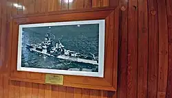 On 7 February 2014, Boeing donated some decking from Colorado to the USO Northwest SeaTac Center to serve as the new center's entry flooring.[14] Her helm is in the collection of the Colorado Springs Museum. It was donated to the museum in 1961 by Rear Admiral G. R. Luker and other naval officers. Admiral Luker served on Colorado. The donation also included a bronze plaque and other historical materials.