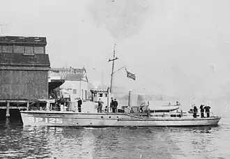Idealia was acquired under free least by the Navy on 25 May 1917 and commissioned the same day designated (SP-125).[12][15] Navy data shows the vessel, with a thirteen man crew, having a cruising speed of 12 knots (14 mph; 22 km/h), a maximum speed of 14 knots (16 mph; 26 km/h) with an endurance of 868 nautical miles (999 mi; 1,608 km). The vessel was armed with a single one pounder gun and two machine guns.[12]