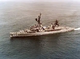 During the Vietnam War, John R. Craig served as a plane guard for aircraft carriers on Yankee Station in the Tonkin Gulf, participated in Operation Sea Dragon, patrolled on search and rescue duties, and carried out naval gunfire support missions. While responding to a mayday on 28–29 July 1965 in the Da Nang area, John R. Craig supported U.S. Marine and Army of the Republic of Vietnam (ARVN) units with naval gunfire support. At night with danger close, she fired 348 5-inch rounds, preventing the overrun of 3rd Platoon, Hotel Company, 2nd Battalion, 3rd Marines on and near the beach as well as two platoons of the ARVN 2nd Regional Force by a larger Viet Cong (VC) unit. In doing so she effectively destroyed the 7th VC Battalion engaging Marines on the Ca De River Bridge and the northern sector of Da Nang.[3][4]