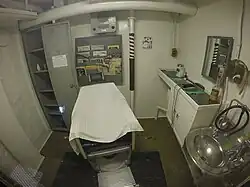 Little Rock's sick bay also aided the stricken ship. Most of the seriously wounded men were taken to America, where two Little Rock corpsmen were dispatched to help in the operating room. Eight of the less seriously wounded, however, were cared for in Little Rock's sick bay. The cruiser returned to Gaeta on 19 June, many days after her scheduled return.[2]
