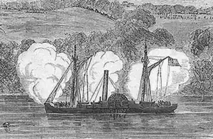 USS Mahaska shelling the Rebels at Harrison's Landing, 1 July 1862