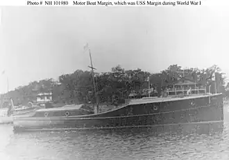 This article incorporates text from the public domain Dictionary of American Naval Fighting Ships. The entry can be found here.- Department of the Navy Naval History and Heritage Command Online Library of Selected Images: Civilian Ships: Margin (Motor Boat, 1917). Served as USS Margin (ID # 2119) in 1918-19