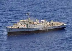 Ex-Monticello was withdrawn from the National Defense Reserve Fleet, Suisun Bay, Benicia, California on 27 June 2010, to be towed to Hawaii for sinking, in July 2010, as part of the RIMPAC 2010 exercise.[3] She was sunk as a target in the Pacific Ocean 70 nautical miles (81 mi; 130 km) off Kauai, Hawaii, on 14 July 2010 by aircraft of the U.S. Navy's Patrol Squadron 4 (VP-4) and Patrol Squadron 40 (VP-40).[4]