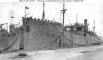 ![]() USS Quincy (AK-10) moored at Norfolk Navy Yard, Portsmouth, VA. 11 March 1921.