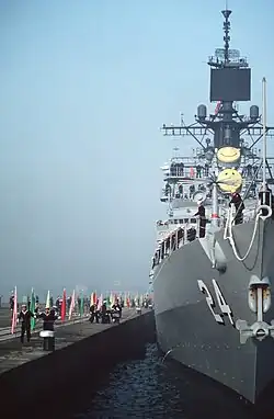 Looking over Reeves's forecastle at Pearl Harbor. (Late 1990s) -