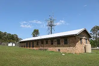 The brick receiving station building and generator shed at Capalaba had been completed in early 1943 with the radio equipment fully installed and operated by the US Signal Corps' 832d Signal Service Company.[27] Some of the station's equipment, including the aerial poles, was manufactured in Australian factories.[28] The Allied Works Council were responsible for the construction of the brick building, the generator shed, the access road and the water supply.[29][1]