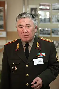 In October 2001, he was appointed commander of the Kazakh Mobile Forces (later renamed Air Assault Forces). From 2003 to 2004, he was Commander of the Forces of the Southern Military District (later regional command "South").[3] He retired in May 2004 before being called up again for military service in 2007. In 2009, he became First Deputy Chairman of the Joint Staff Committee. In September 2010, he became Head of the Personnel Department of the Ministry of Defense. He retired on 14 December 2011[4] and has since then been Head of the Military Department of the L. N. Gumilyov Eurasian National University.[5][6]