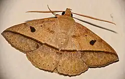 The ground colour of the wings is medium reddish brown in males. Females are more ochreous.[2]