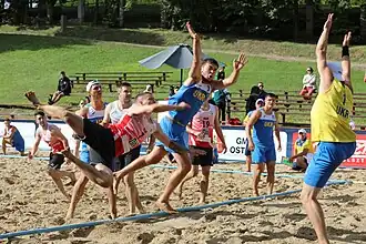 The Ukraine national beach handball team is the national team of Ukraine. It is governed by the Ukrainian Handball Federation and takes part in international beach handball competitions.[1]