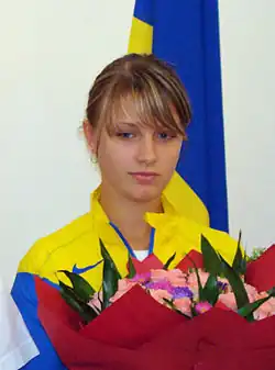 At the 2008 Summer Olympics, two types of weapons were supported: women's saber and men's épée.[7] They took part in individual and team competitions and two athletes (Olha Leleiko - foil, Yana Shemyakina - épée) - in individual competitions. The women's saber team led by 17-year-old Olga Kharlan won the gold medal,[8][9] and the men's épée took 7th place.[10]