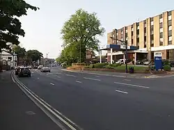 No specimens are known to survive, but an old semi-pendulous, smooth-leaved, non-suckering elm by the Mercure Hotel, Mansfield Road, Nottingham (2021) (site of the former Park Inn Hotel), a street once lined with villas and planted by the Council from 1863 with the so-called 'Siberian elm' clone,[15] was identified as an Ulmus × hollandica by the Tree Register,[16] and later as a smooth-leaved field elm by The Woodland Trust.[17] Its form recalls the examples of Richens' 'Nottingham Elm' in the Castle and Park areas.[18][19]