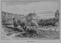 The Park, Nottingham (Illustrated London News, 1888), showing Tennis Drive, Park Terrace and Newcastle Drive, streets planted with the Castle Nurseries clone from the 1850s