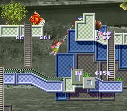 The game contains a total of 49 fields of which four are exit fields and six are boss fields. The game makes use of colour palette of the Super Famicom for digitized photographic backgrounds. The game permits saving speedruns, establishing such play as a principal feature of the series.