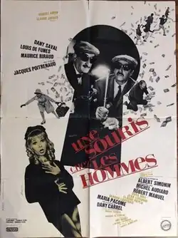 Une souris chez les hommes (English: A Mouse with the Men) is a French comedy film from 1964, directed by Jacques Poitrenaud, written by Michel Audiard and Francis Ryck, starring Dany Saval and Louis de Funès. The film is known under the titles: "A Mouse with the Men" (International English title), "Un drôle de caïd" (alternative French title of 1968 theater release), "O Tesouro Oculto" (Portugal), "Bei Oscar ist 'ne Schraube locker" (West Germany), "Due uomini in fuga... per un colpo maldestro" (Italy).[1]