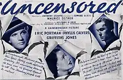 Uncensored is a 1942 British war drama film directed by Anthony Asquith starring Eric Portman, Phyllis Calvert and Griffith Jones. The film was produced at Gainsborough Pictures by Edward Black, with cinematography from Arthur Crabtree and screenplay by Rodney Ackland, Wolfgang Wilhelm and Terence Rattigan based on the 1937 novel of the same title by Oscar Millard.[1] The film was shot at the company's Lime Grove Studios in Shepherd's Bush, with sets designed by the art director Alex Vetchinsky.
