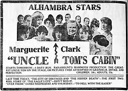 Uncle Tom's Cabin starred Marguerite Clark, who portrayed both Topsy and Little Eva.[2] It is now considered to be a lost film.[3]