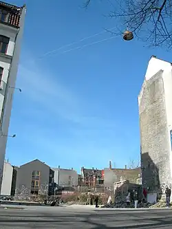 From the mid-1990s till 2007, Jagtvej 69 was the subject of intense media attention and public debate. This was due to an ongoing conflict between the Copenhagen Municipality and activists occupying the premises. In 2007, Ungdomshuset was evicted from Jagtvej 69 and the building was demolished.[1] Police started to clear the Ungdomshuset building early on Thursday, 1 March 2007. Demolition began on 5 March, and was completed in two days.[2][3]