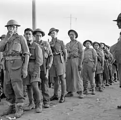 During the Gallipoli campaign New Zealand troops wore a variety of hot-weather khaki drill uniforms with either slouch hats or the forage cap of the standard 1912 uniform.[9] Supply difficulties and the harsh nature of terrain and climate during this campaign meant that little emphasis was placed on smartness or uniformity of dress.[10]
