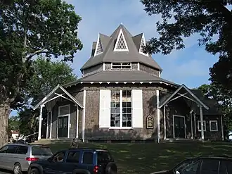 Union Chapel (or the Oak Bluffs Christian Union Chapel) is an historic octagon-shaped church building in Oak Bluffs, on Martha's Vineyard, Massachusetts. The church was built in 1870 as a non-sectarian worship space in an area dominated by the Methodist summer camp meeting known as Wesleyan Grove. Acquired in 2002 by the nonprofit Martha's Vineyard Preservation Trust, the building continues to be used for non-sectarian religious services, and also serves as a community center and performing arts space.