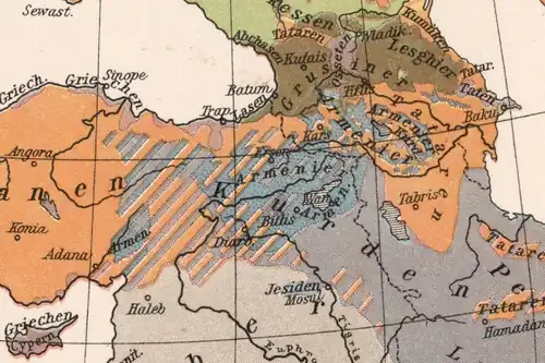 A union of territories of Turkish, Russian, and Persian Armenia would result in enough area to constitute an independent state, but in no considerable section of this area would the Armenians form a clear majority of the population. To be sure, the Armenians would be the most intelligent and progressive element; but their numbers and their vitality has been greatly reduced by the long series of persecutions and massacres, and there has been such extensive destruction of property in these territories, that their potential force has been reduced as to form a serious bar to their gaining the ascendancy over the more numerous racial elements in the territory.