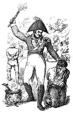 With his troops' reputation for half-hanging, pitch-capping and other interrogative refinements travelling before him, at the end of 1797 Lake tuned his attention to disarming Leinster and Munster.[124] As in the north, following Bantry societies in the south flooded with new members. In Leinster the new system took hold: the various republican clubs and cover lodges, and much of Defender network, were marshalled through delegate committees under a provincial executive in Dublin[125][126] Among others who were to serve on the executive were Thomas Addis Emmet; Richard McCormick, Tone's replacement as secretary to the Catholic Committee; the Sheares brothers (witnesses to the execution of Louis XVI)[127] and two disillusioned parliamentary patriots: the future Napoleonic general Arthur O'Connor and the popular Lord Edward Fitzgerald.