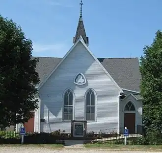 Scotch Ridge United Presbyterian Church was established on August 13, 1853. On that day Robert McElroy went to Chariton, Iowa to get the charter. The first church building was built in 1857 for $1,000.[2] Pete Schooler and his wife sold two acres of the land for $30 on January 3, 1865, for a new Presbyterian Churchyard. On April 28 of the same year William Hastie and his wife sold one acre of adjacent land for $25 for a cemetery. The present frame church building was built in 1883 for $4,000 in the Gothic Revival style.[2] Additional land for the cemetery was added in 1898 and 1971. An additional fellowship hall wing was added in 2010.