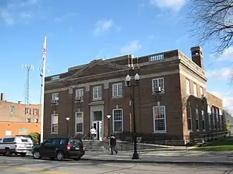 US Post Office-Dunkirk is a historic post office building located at Dunkirk in Chautauqua County, New York. It was designed and built in 1928-1929 and is one of a number of post offices in New York State designed by the Office of the Supervising Architect of the Treasury Department, James A. Wetmore. It is a two-story brick structure with a one-story rear wing, in the Colonial Revival style. The entrance is set within a limestone surround with a Doric frieze and modest cornice.[2]
