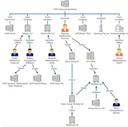 Illustration of a network of front companies used by the Russian Federation to evade United States sanctions.