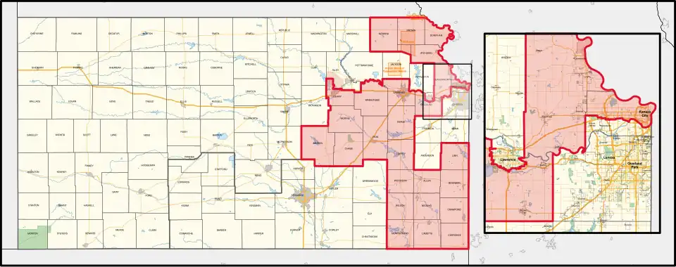 | 117th (2021–2023) | Tracey Mann (R) | Jake LaTurner (R) | ||
