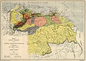 The 1864 constitution established the borders of the United States of Venezuela to be the same of those of the 1810 Captaincy General of Venezuela.[4] This statement has been preserved throughout subsequent constitutions.