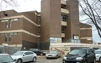 The school was planned for as part of a 1960s urban renewal project. It was designed as a large comprehensive high school to serve 3000 students in grades nine through twelve.[1] Twenty-five percent of the school's capacity was reserved for an elite math and science magnet program that would draw students from throughout the city.[1] The remaining seventy-five percent was for students from the school's local catchment area.[2]