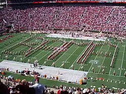 The cheer was a pregame ritual until the early 2000s, chanting "We're gonna' beat the hell out of you!", but this was considered unsportsmanlike and banned. The university also briefly forbade the Million Dollar Band from playing it after games, because of its taunting nature.[17] The move was met with a significant amount of criticism. In a vote at Homecoming 2005, the question was posed to students of whether the cheer should be banned. Ninety-eight percent of students voted in favor of keeping the cheer.[18] Before the university's attempt to remove the cheer, it was played before kickoff and at the end of the game. The cheer is now only played in the closing minutes when victory is certain, and is traditionally chanted twice. On at least one occasion (during Alabama's victory over Auburn in the 2008 Iron Bowl, Alabama's first in the series since 2001), it was repeated an additional four times to signify the breaking of the 6-game losing streak to Auburn. After Alabama's victory over the Florida Gators in the 2009 SEC Championship Game, as well as after Alabama's victory over the Texas Longhorns in the 2010 Citi BCS National Championship Game, the cheer was played nine times. Depending on what team Alabama is playing, the Million Dollar Band and fans will call out to the opposing team by chanting the team's mascot with the exception being Auburn University; they do not refer to them as the Tigers, just as Auburn.
