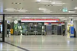 The University of Helsinki metro station (Finnish: Helsingin yliopiston metroasema, Swedish: Helsingfors universitets metrostation) is a station on the Helsinki Metro. It serves the University of Helsinki and surrounding areas in the central Helsinki districts Kaisaniemi and Kluuvi. From 1995 to 2015, the station's name was Kaisaniemi.[2] The station is 27 metres below ground level and 22 metres below sea level. It is positioned 600 metres east of the Central Railway Station and 900 metres south of Hakaniemi. Both lines M1 and M2 serve the station.