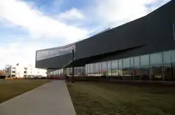 One of the newest additions to the campus is the Al Neuharth Media Center, named for the founder of USA Today. Dedicated in September 2003, the Neuharth Center houses the news and media organizations on campus, including the Freedom Forum’s South Dakota operations, South Dakota Public Broadcasting, the Department of Contemporary Media and Journalism, the campus newspaper The Volante, campus radio station KAOR, and television station KYOT. Formerly an armory and athletic field house, the building was converted into a media center through donations made by Al Neuharth, a 1950 USD graduate.[14]