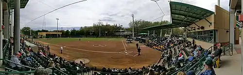 The shared baseball and softball complex opened in 2011 after the baseball team's old Red McEwen Field was reconfigured (home plate in the new stadium moved to where right field was in the original stadium) to add space for a new softball field adjacent to the baseball field. The stadiums share an entrance, concourse, and the Donaldson Deck, a party deck where fans can view both fields at the same time.[16] The shared entrance is adjacent to the Yuengling Center from the other side of Bull Run Drive and the baseball stadium is across Elm Drive from Corbett Stadium and the Lee Roy Selmon Athletic Center.