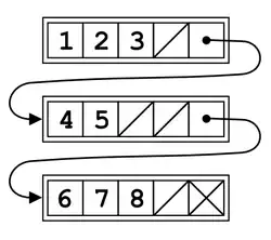 record node { node next // reference to next node in list int numElements // number of elements in this node, up to maxElements array elements // an array of numElements elements, // with space allocated for maxElements elements }